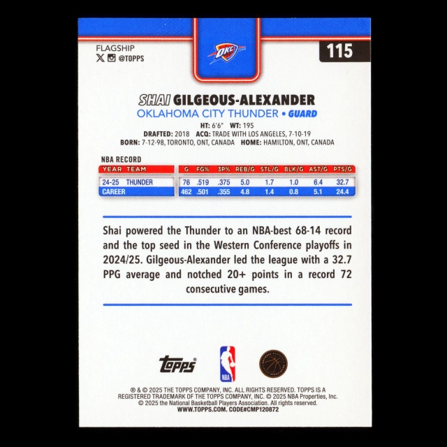 Shai Gilgeous-Alexander 2025-26 Topps Thunder
