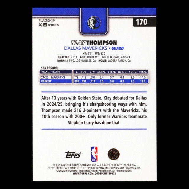 Klay Thompson 2025-26 Topps Mavericks