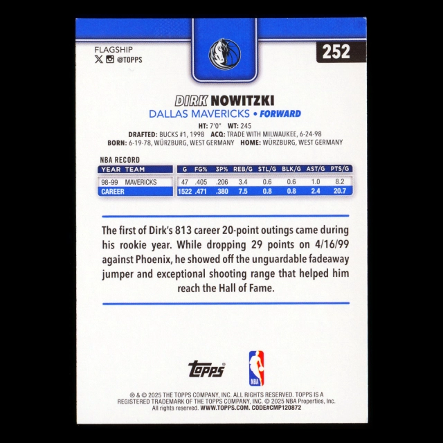 Dirk Nowitzki 2025-26 Topps Mavericks