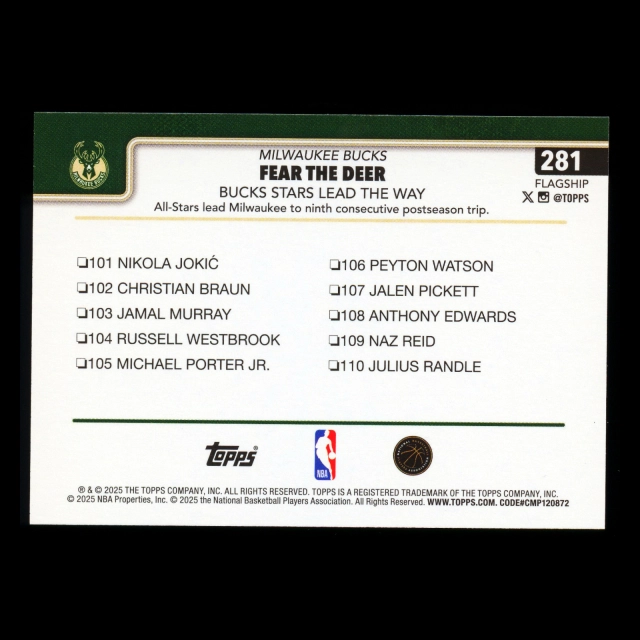 Giannis Antetokounmpo 2025-26 Topps Checklist Bucks