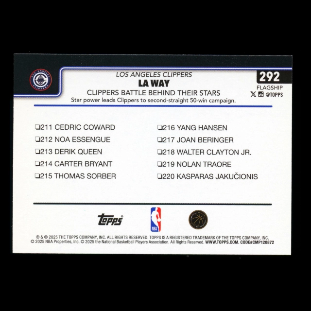 James Harden 2025-26 Topps Checklist Clippers