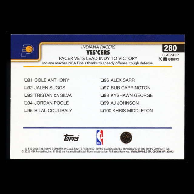 Tyrese Haliburton 2025-26 Topps Checklist Pacers