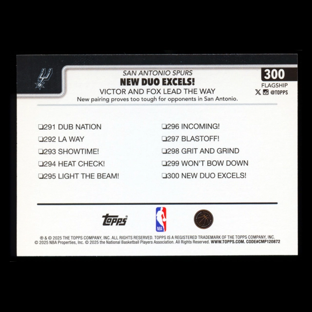 Victor Wembanyama 2025-26 Topps Checklist Spurs