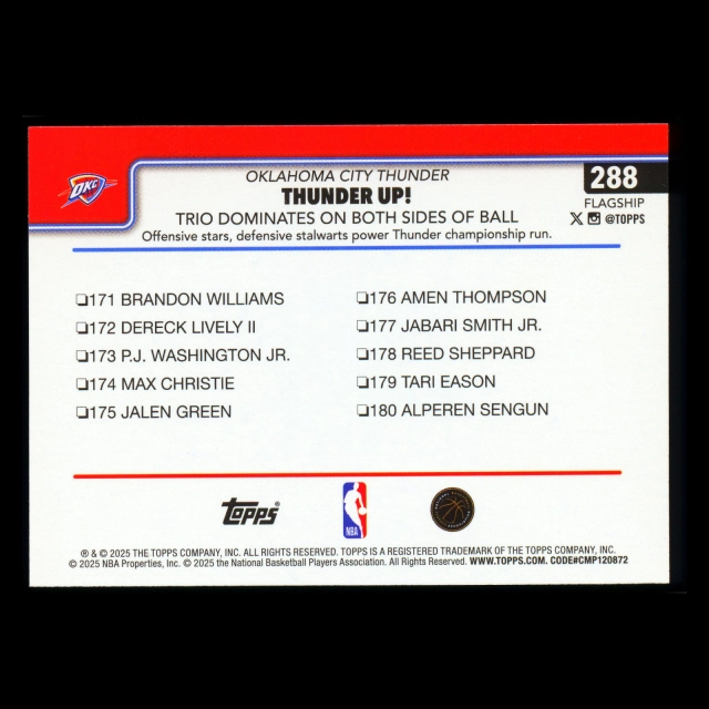 Shai Gilgeous-Alexander 2025-26 Topps Checklist Thunder