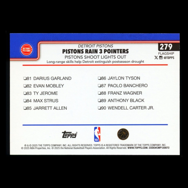 Cade Cunningham 2025-26 Topps Checklist Pistons