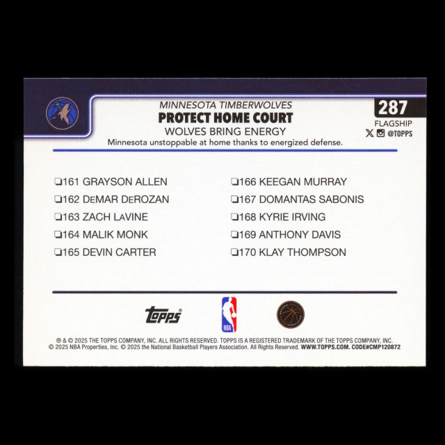 Anthony Edwards 2025-26 Topps Checklist Timberwolves