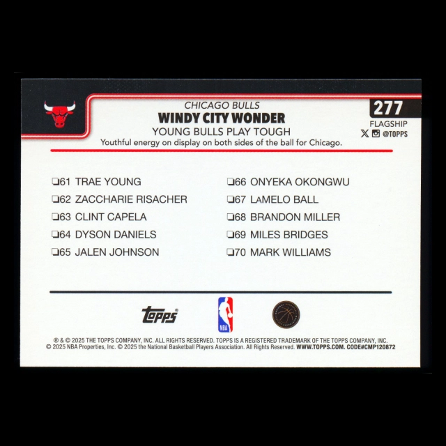 Josh Giddey 2025-26 Topps Checklist Bulls