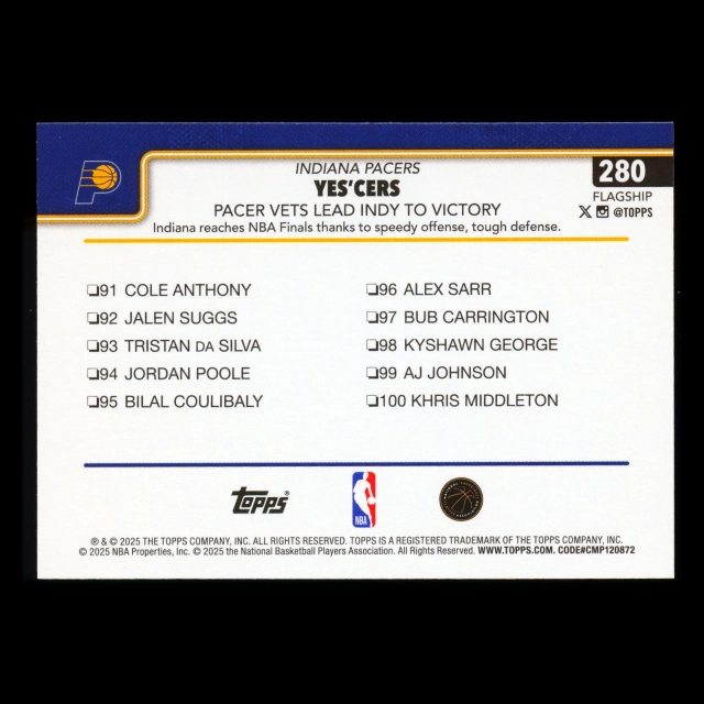 Tyrese Haliburton 2025-26 Topps Checklist Pacers