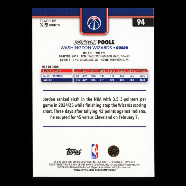 Jordan Poole 2025-26 Topps Holo Foil Wizards