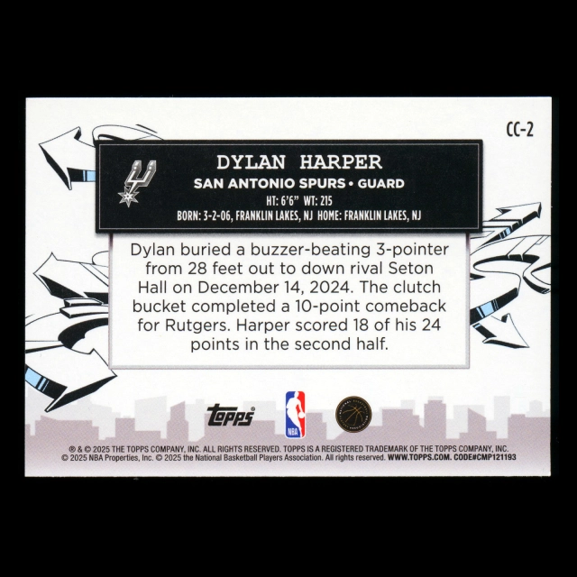 Dylan Harper RC 2025-26 Topps Clutch City Prospects Rookie Spurs