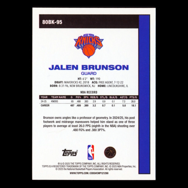 Jalen Brunson 2025-26 Topps '80-81 Topps Retro Knicks