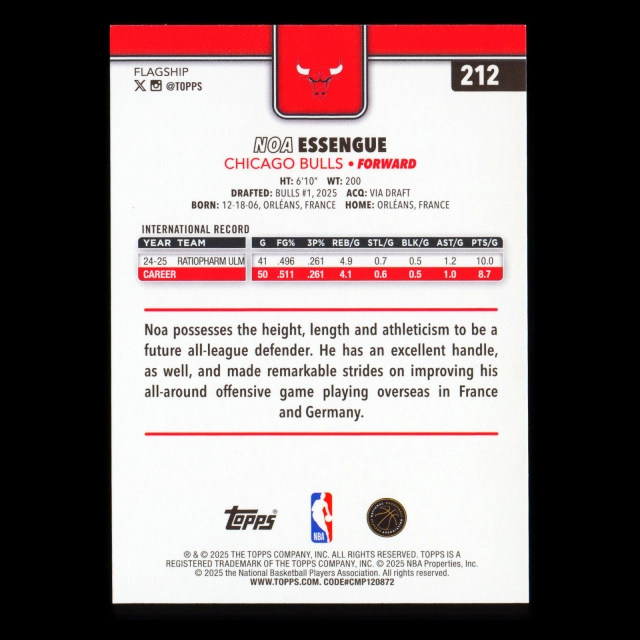 Noa Essengue RC 2025-26 Topps Rookie Bulls