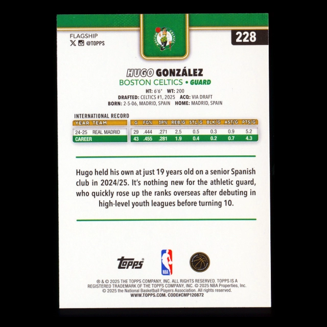 Hugo Gonzlez RC 2025-26 Topps Rookie Celtics