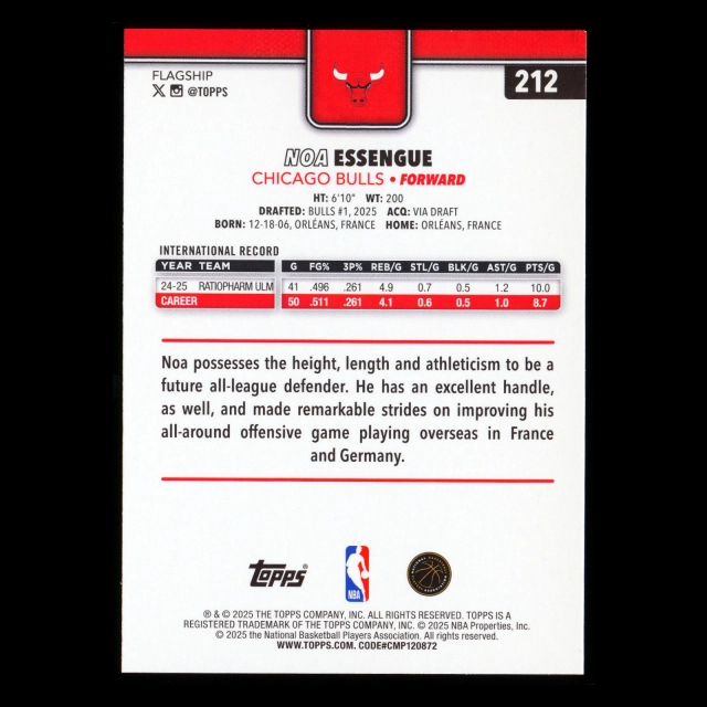 Noa Essengue RC 2025-26 Topps Rookie Bulls