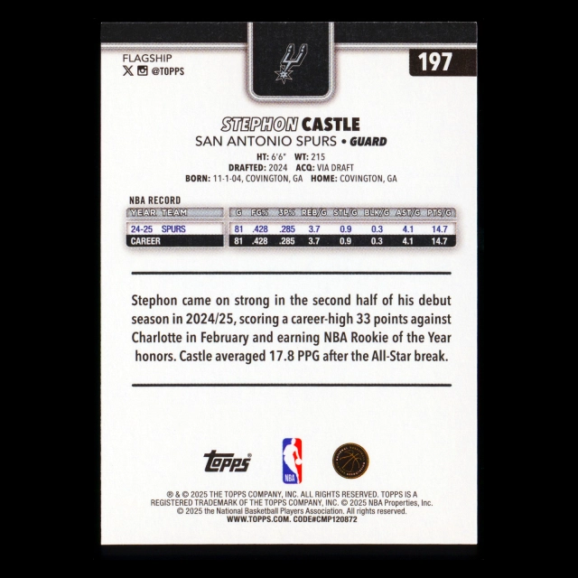 Stephon Castle RC 2025-26 Topps Rookie Spurs