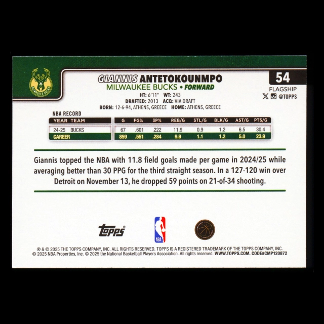 Giannis Antetokounmpo 2025-26 Topps Bucks