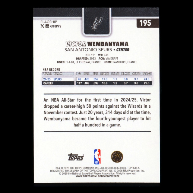 Victor Wembanyama 2025-26 Topps Spurs