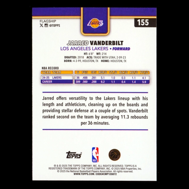 Jarred Vanderbilt 2025-26 Topps Rainbow Foil Lakers