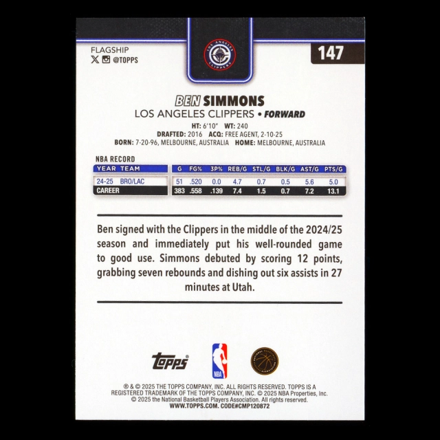 Ben Simmons 2025-26 Topps Holo Foil Clippers