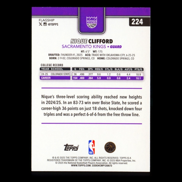 Nique Clifford RC 2025-26 Topps Rookie Kings