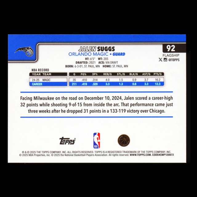 Jalen Suggs 2025-26 Topps Holo Foil Magic