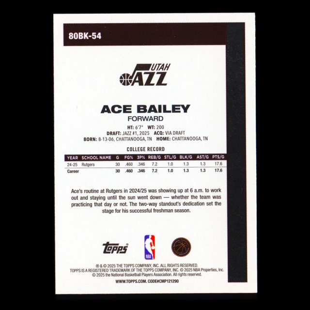 Ace Bailey RC 2025-26 Topps '80-81 Topps Rookie Jazz