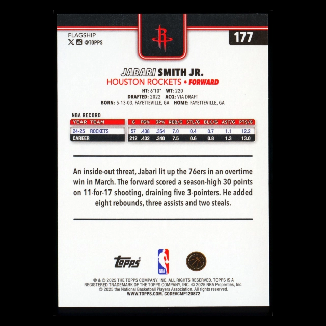 Jabari Smith Jr. 2025-26 Topps Rainbow Foil Rockets