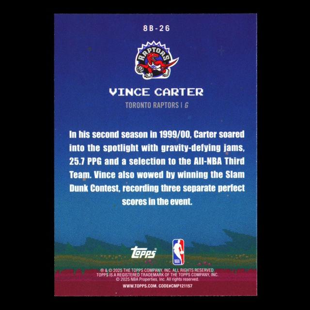 Vince Carter 2025-26 Topps 8-Bit Ballers Raptors