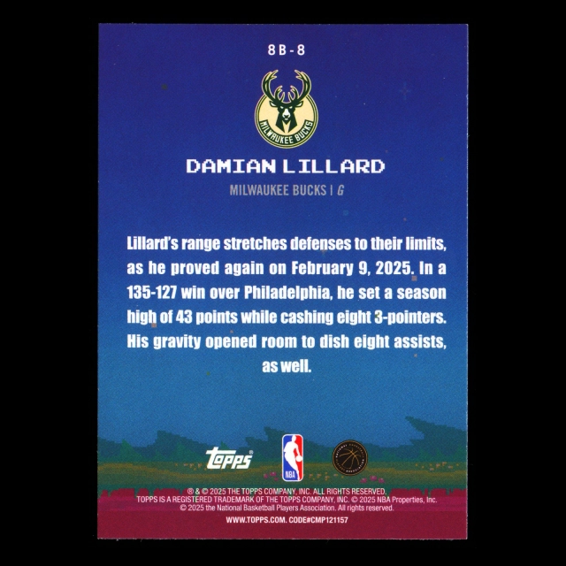 Damian Lillard 2025-26 Topps 8-Bit Ballers Bucks