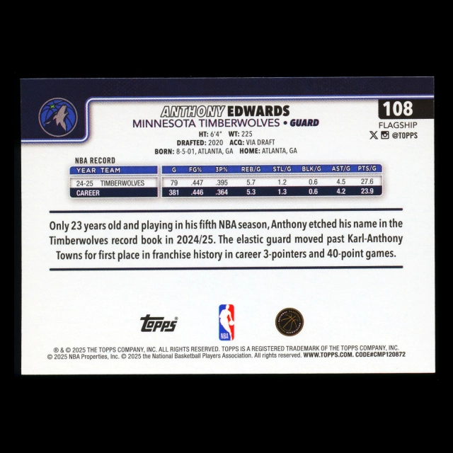 Anthony Edwards 2025-26 Topps Timberwolves