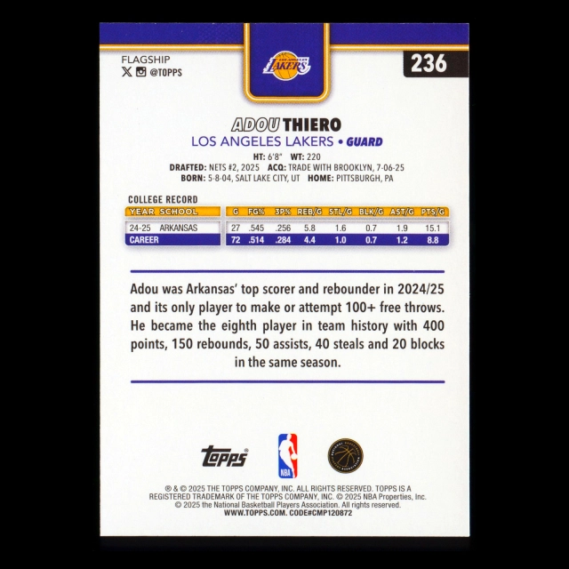 Adou Thiero RC 2025-26 Topps Rookie Lakers