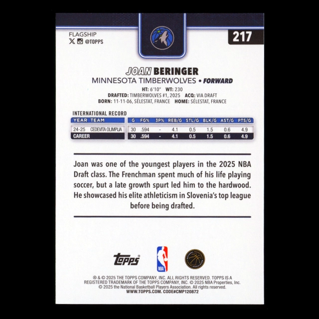 Joan Beringer RC 2025-26 Topps Rookie Timberwolves