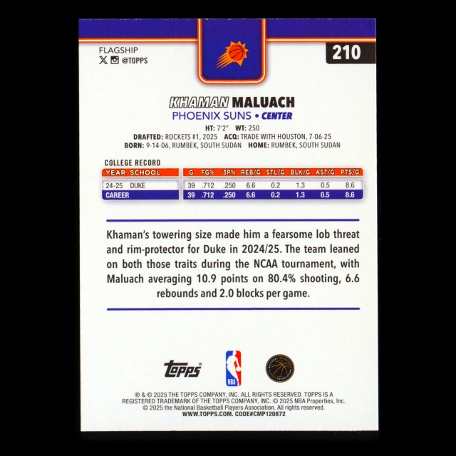 Khaman Maluach RC 2025-26 Topps Rookie Suns