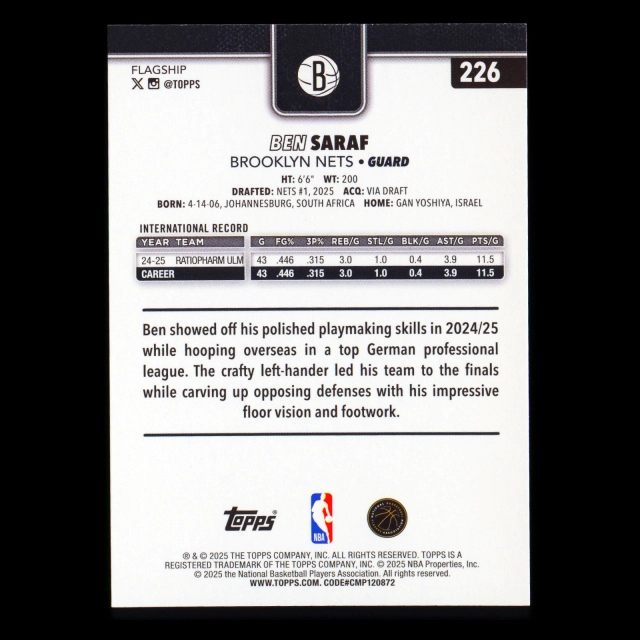 Ben Saraf RC 2025-26 Topps Rookie Nets