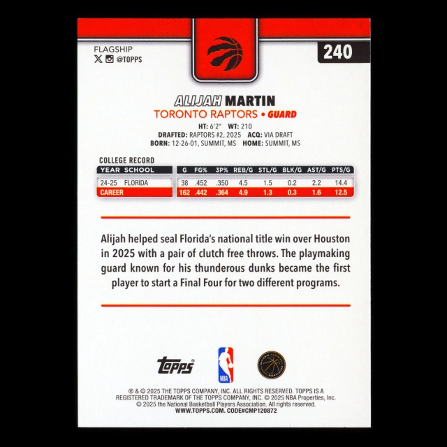 Alijah Martin RC 2025-26 Topps Rookie Raptors