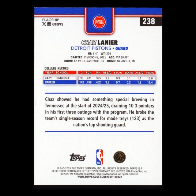 Chaz Lanier RC 2025-26 Topps Rookie Pistons