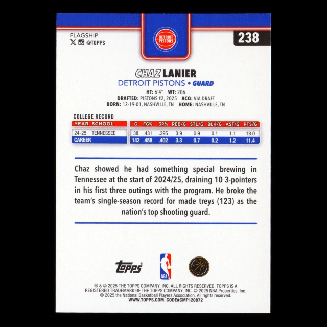 Chaz Lanier RC 2025-26 Topps Rookie Pistons