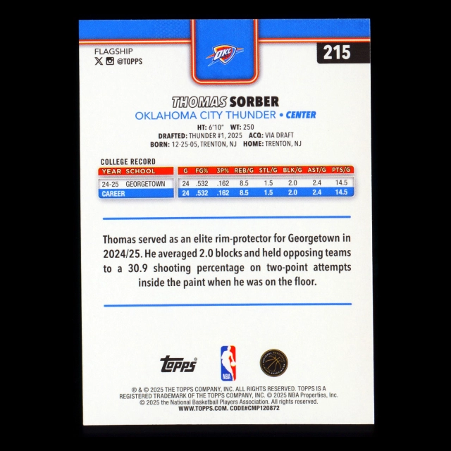 Thomas Sorber RC 2025-26 Topps Rookie Thunder