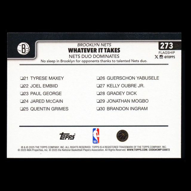 Cameron Johnson 2025-26 Topps Season Tip Off Checklist Nets