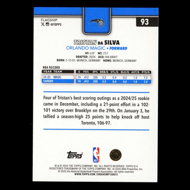 Tristan da Silva 2025-26 Topps Season Tip Off Magic