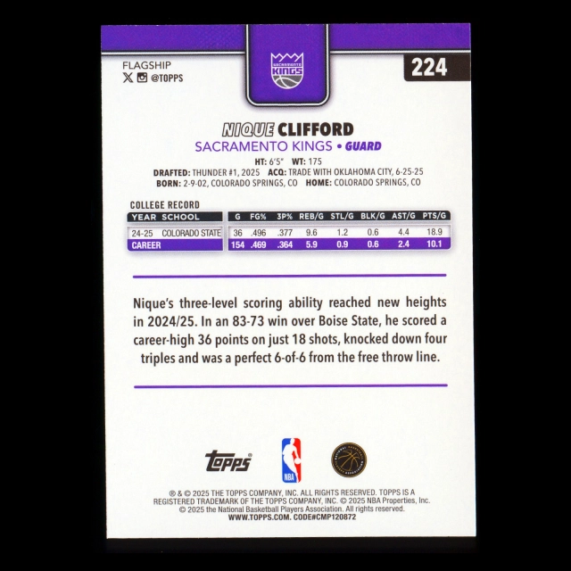 Nique Clifford RC 2025-26 Topps Rookie Kings