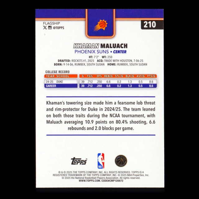 Khaman Maluach RC 2025-26 Topps Rookie Suns