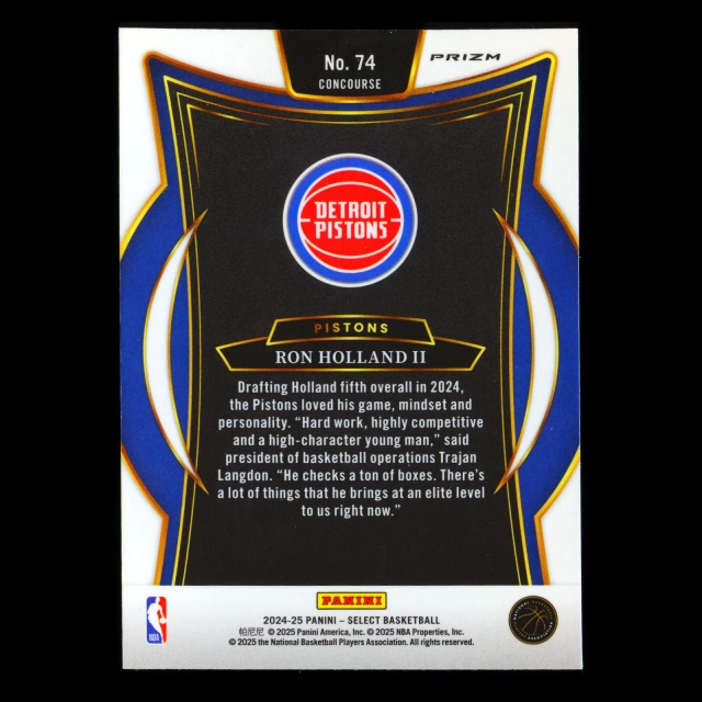 Ron Holland II RC 2024-25 Select Orange Flash Prizm Rookie Pistons