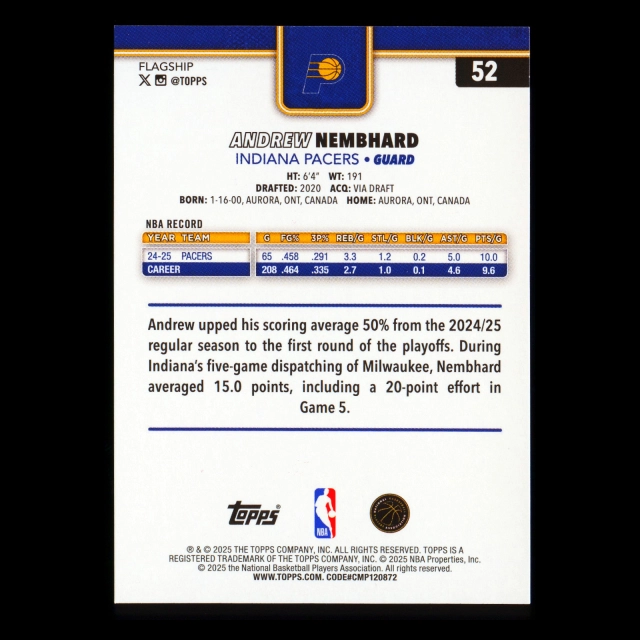 Andrew Nembhard 2025-26 Topps Silver Holo Foil Pacers