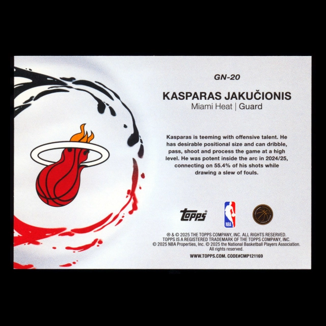 Kasparas Jakucionis RC 2025-26 Topps Generation Now Rookie Heat
