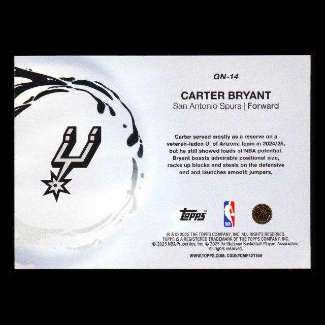 Carter Bryant RC 2025-26 Topps Generation Now Rookie Spurs