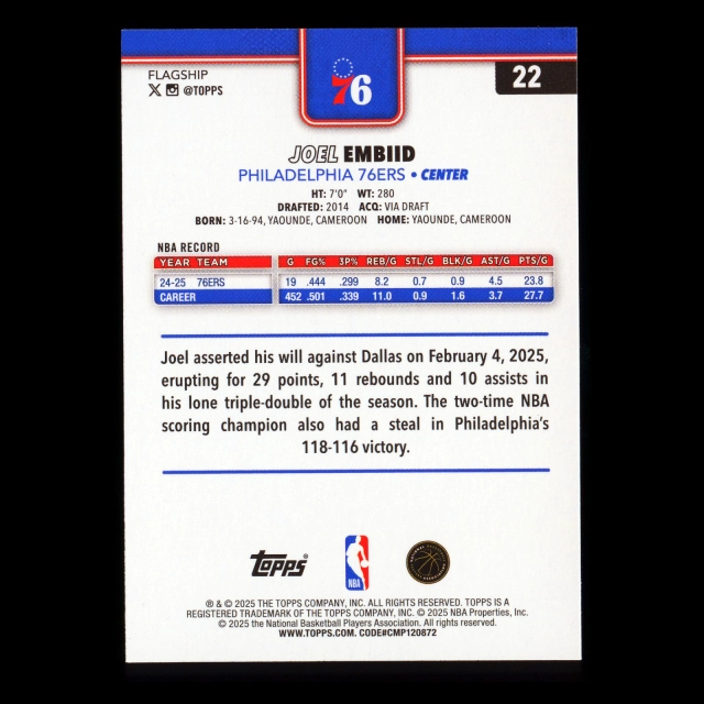 Joel Embiid 2025-26 Topps Season Tip Off 76ers