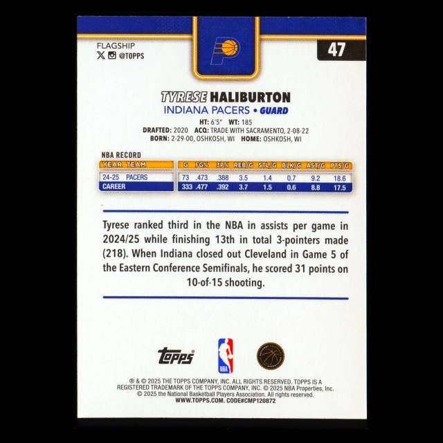 Tyrese Haliburton 2025-26 Topps Season Tip Off Pacers
