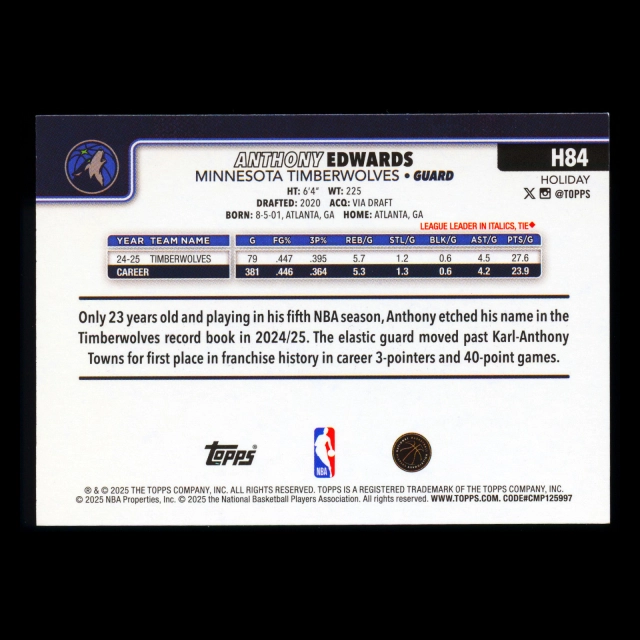 Anthony Edwards 2025-26 Topps Holiday Timberwolves