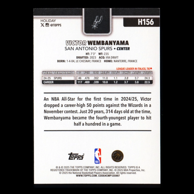 Victor Wembanyama 2025-26 Topps Holiday Spurs